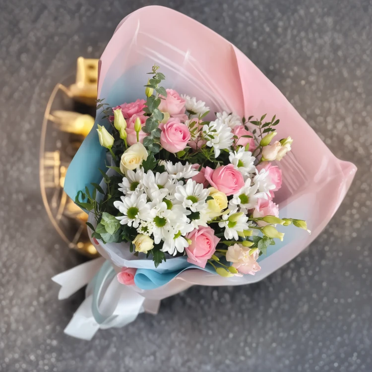Букет "Очарование" представляет собой изысканное сочетание кустовых роз, лизиантусов и хризантем, создающих ощущение величественности и элегантности. Яркая и насыщенная палитра этих цветов переплетается в одно целое, образовывая потрясающее зрелище. Каждый цветок в этом букете отражает свою уникальность и неповторимость, добавляя гармонии и изыска. Бархатные лепестки кустовых роз умело сочетаются с прекрасными лизиантусами, а нежные хризантемы придают композиции деликатность и изысканность.